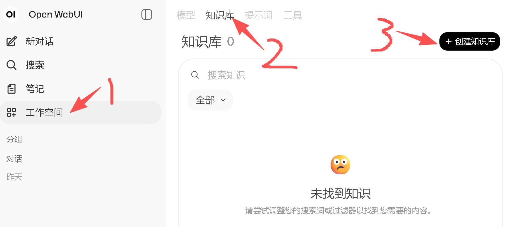 接下来就可以去创建需要文档的知识库了,可以点击工作空间进行创建: