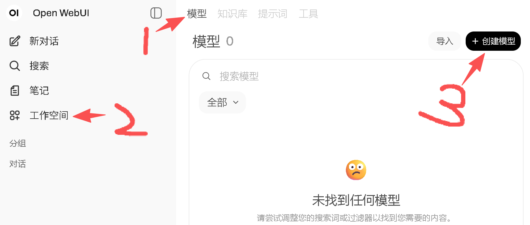 所需的知识库和前端界面就还是选 open-webui,所需的大模型为: