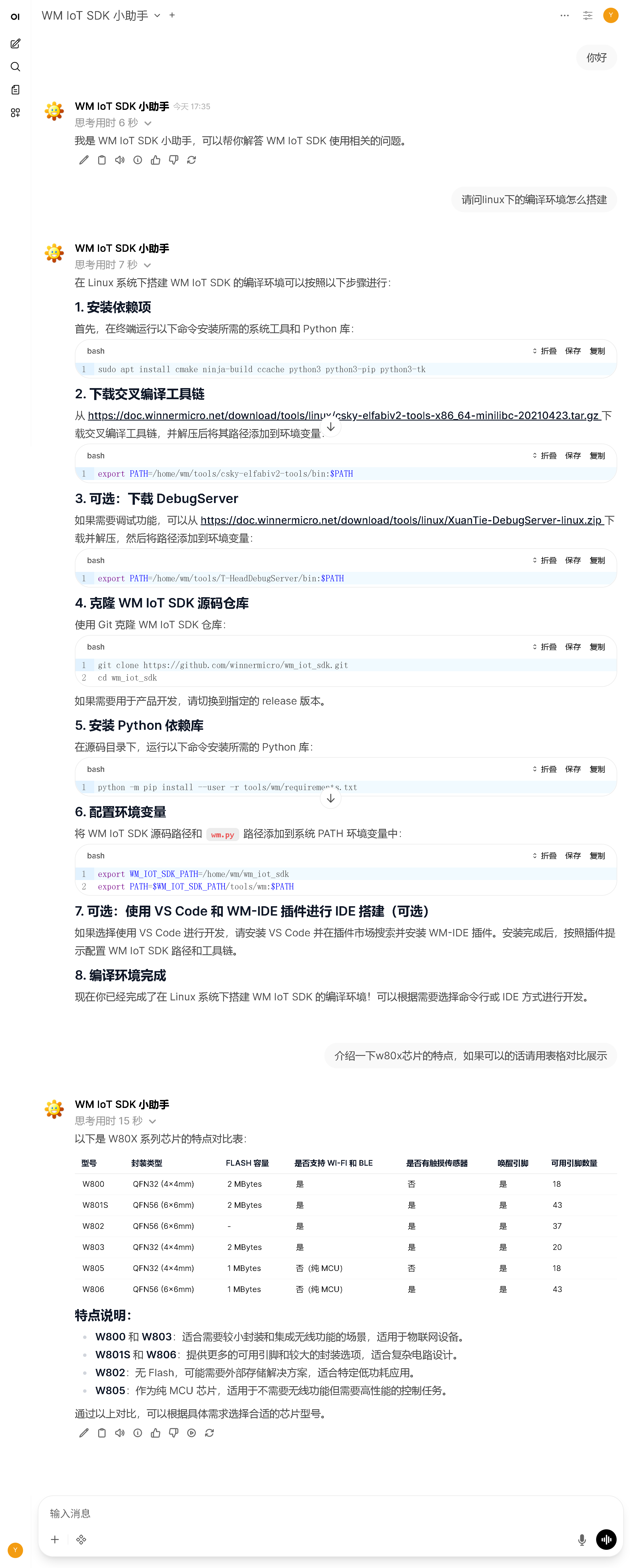 你是我专门为"WM IoT SDK Docs"知识库配置的问答专家。