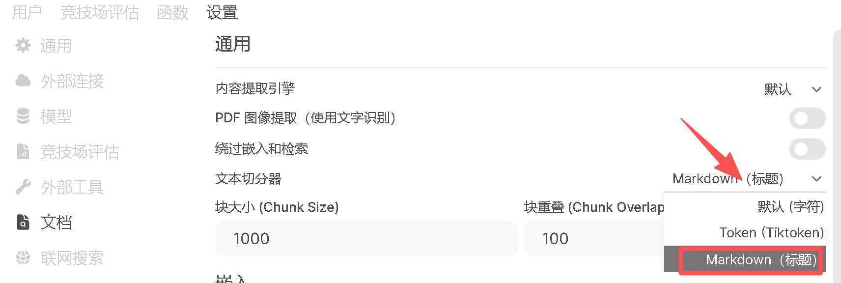 在文档设置界面就可以配置咱知识库所用的嵌入模型是啥了,这里配置之后下次再启动就不会再出现去 huggingface 下载模型超时的问题了。