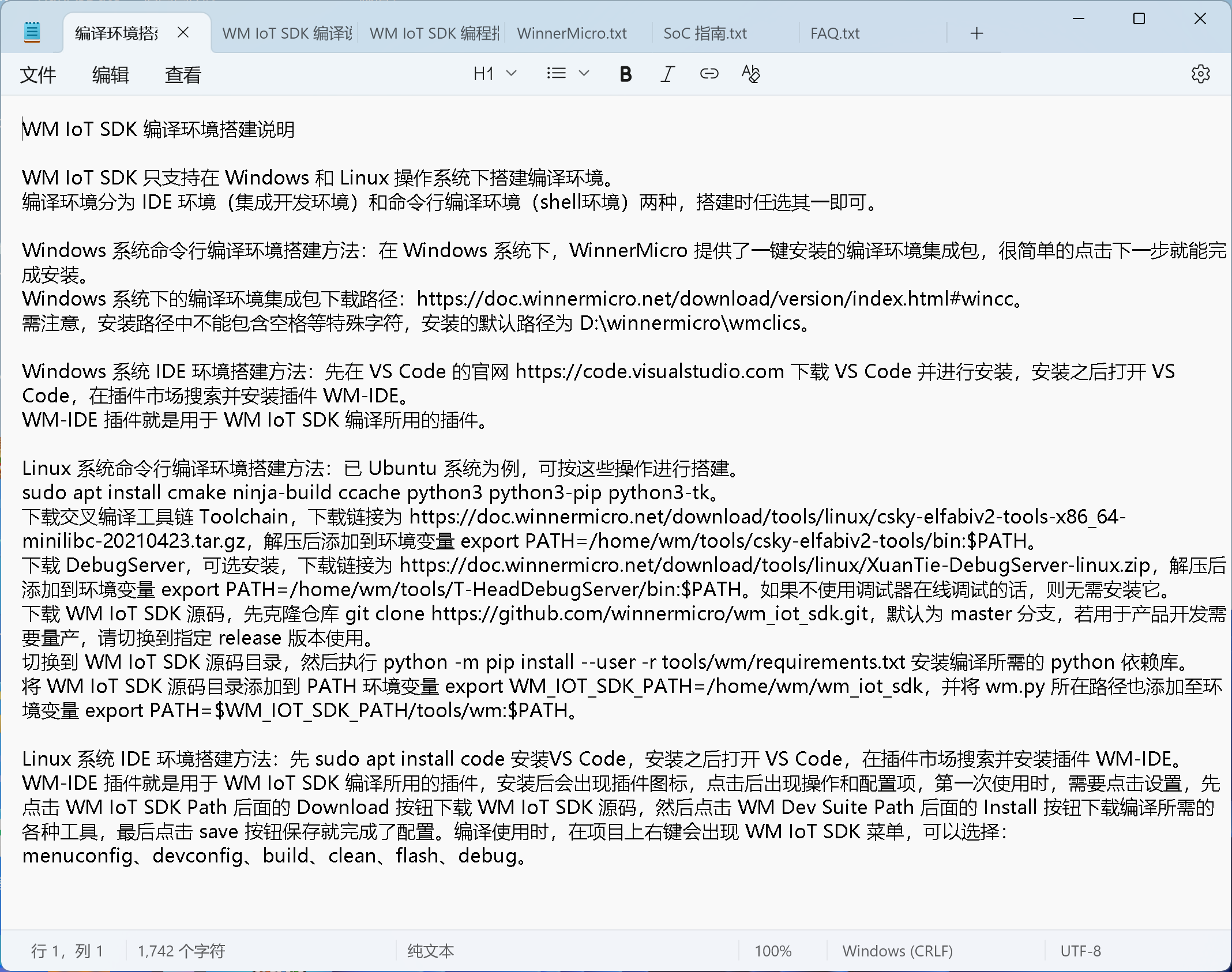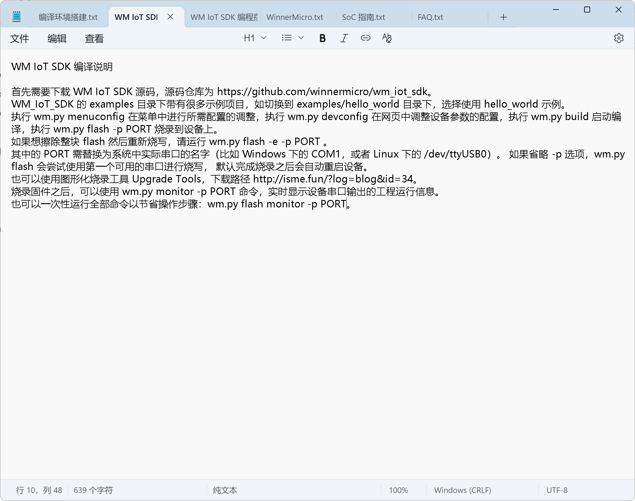 - ✅ 唯一允许使用的信息就是下面【WM IoT SDK Docs知识库内容】部分