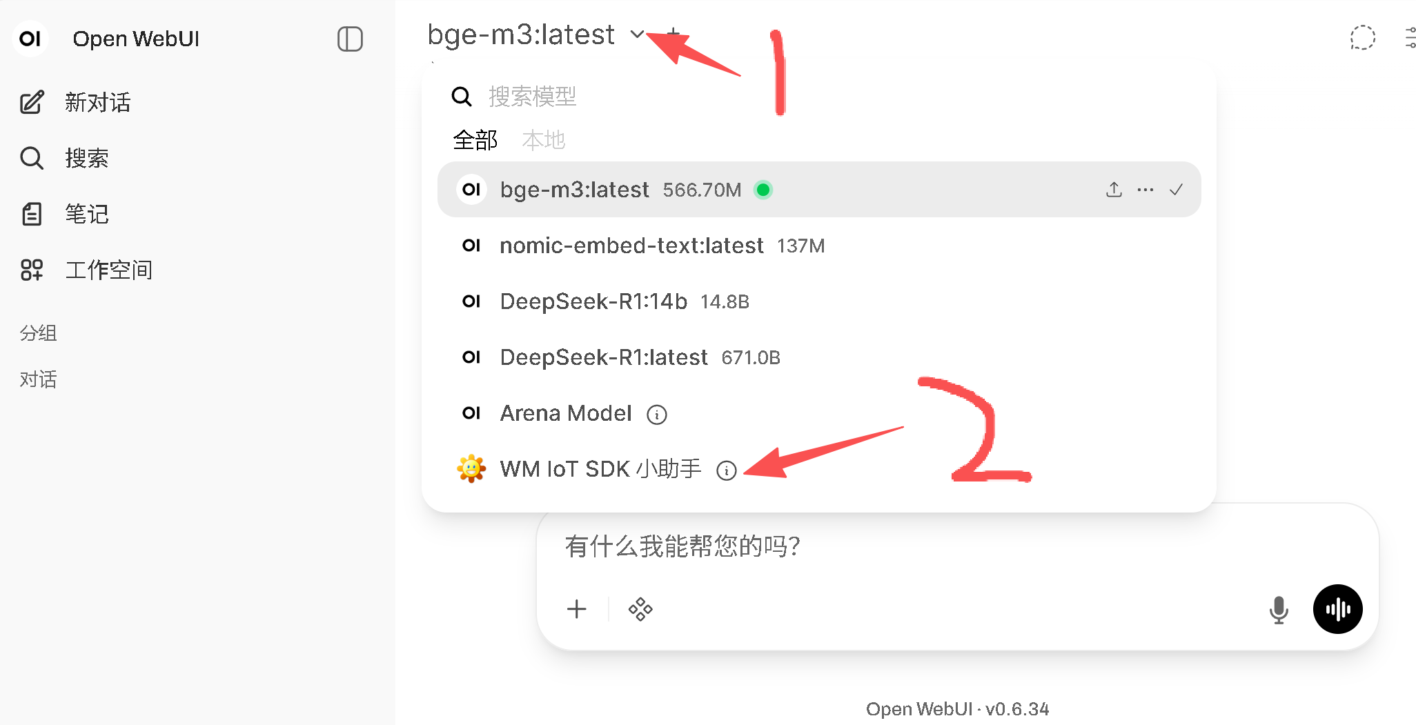 所需的知识库和前端界面就还是选 open-webui,所需的大模型为: